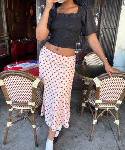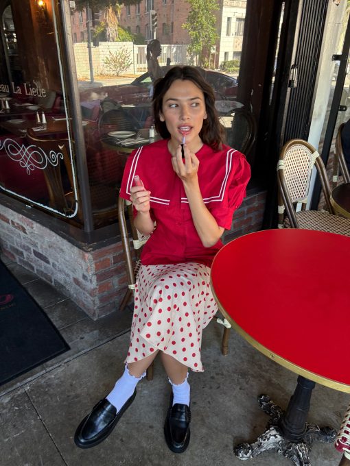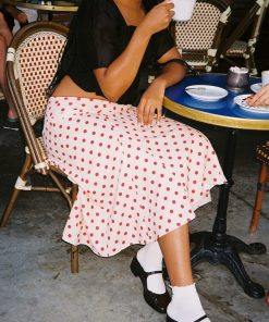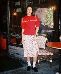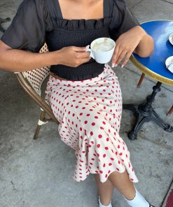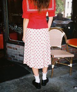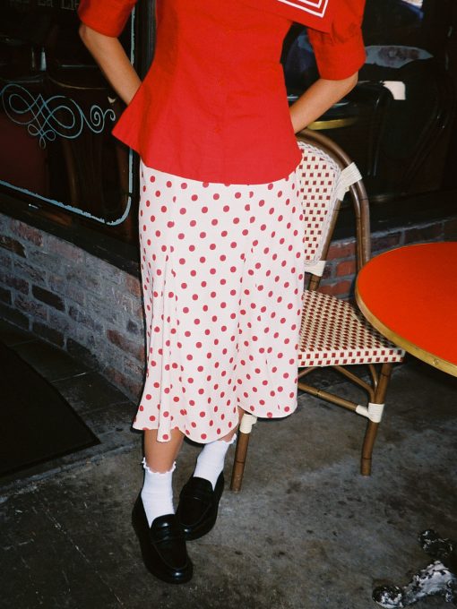 The Amora is midi skirt featured in our signature Scarlett Dot print from our Le Petit Dot Collection. This skirt has panels to create a perfect flowy skirt that can be styled for a cute cafe date or a day at the farmer’s market. Unlined. Zipper closure at center-back.