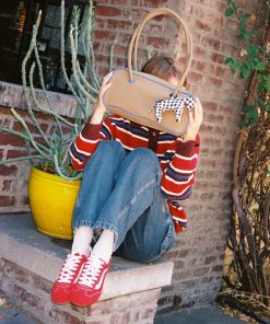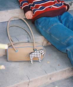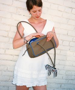 Damson’s take on a classic bowler, meet the Benny Mini Bowler in olive/cobalt. Featuring contrast cobalt piping details and lining.