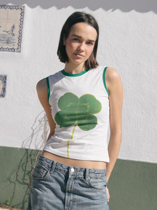 Lisa Says Gah Women’s Clover Tank | Off-white & Green