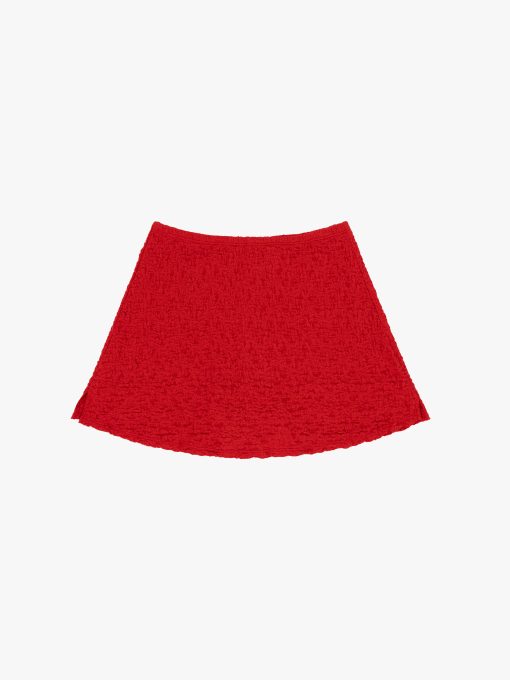 The Darcy Skort is a best selling mini skirt with a built in short. The high waisted skort is made with an elastic waistband and stretchy material for comfort and ease. Featured in our signature crinkle fabric in a red pepper color.