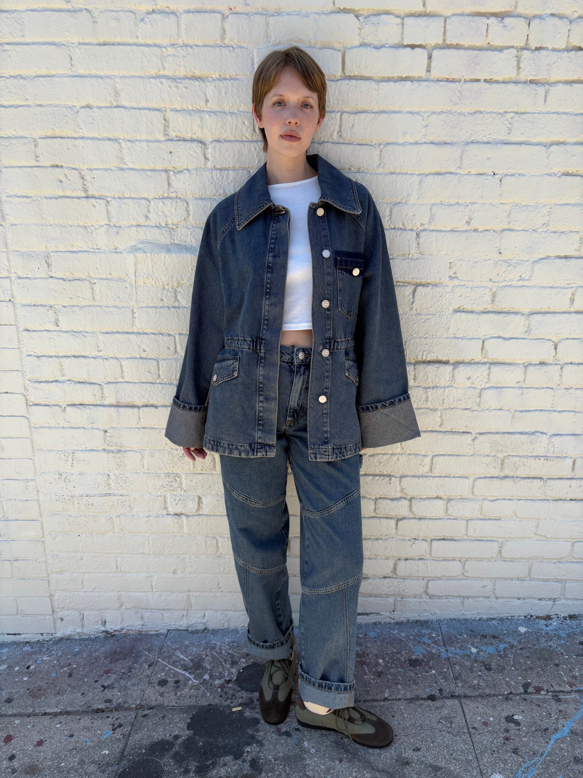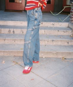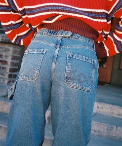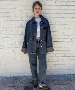 A mid rise, relaxed jean which can be adjusted to your preference with the back waist adjuster. Finished with knee panel detailing and Damson Madder embroidery on the back pockets. Pair with the matching Emilie Workwear Jacket for a complete head-to-toe look.