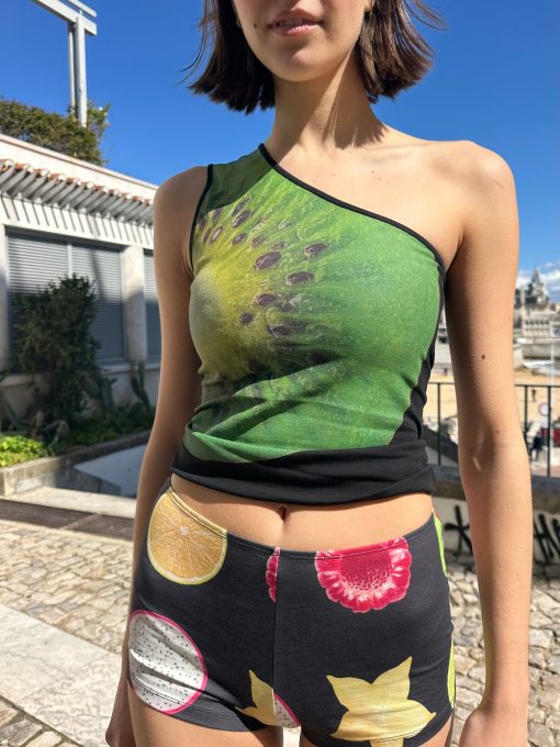 Mini boy shorts featured in a fun fruit slice print. Soft and stretchy for a comfortable fit.