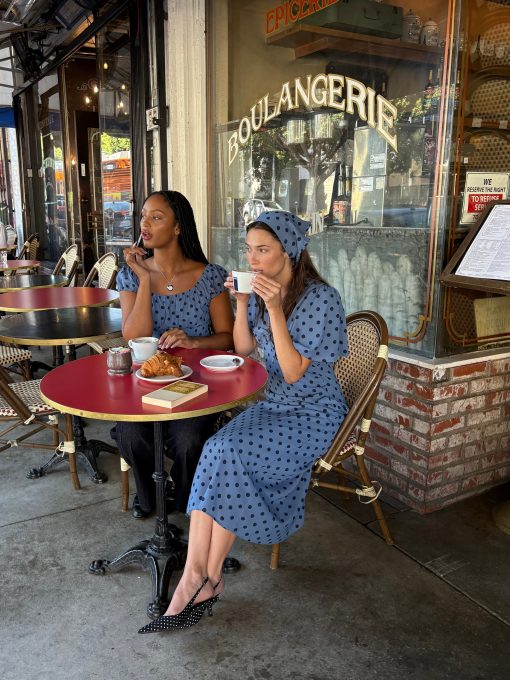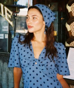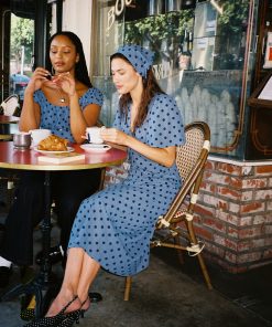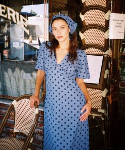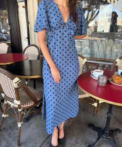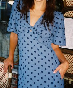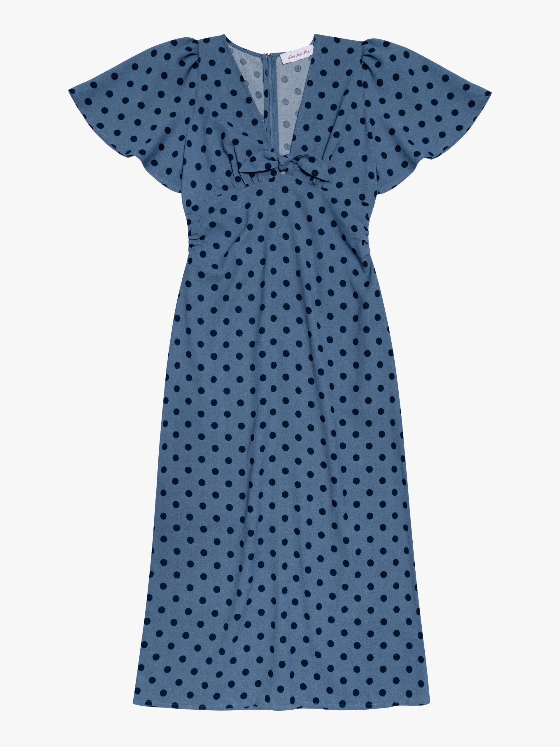 Introducing : Dots, stripes, and silhouettes made for the season in-between. The Jess Dress is featured in our signature Oxford Dot print. This dress has a side slit and fluttery sleeves with a beautiful v-neckline that ties at front. Unlined. Center-back zip closure.