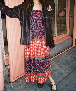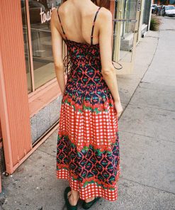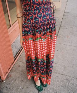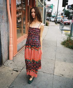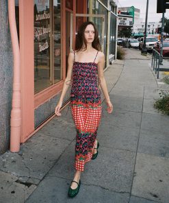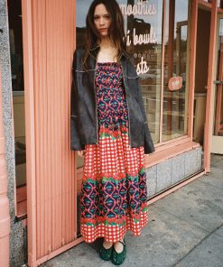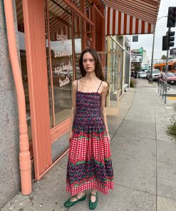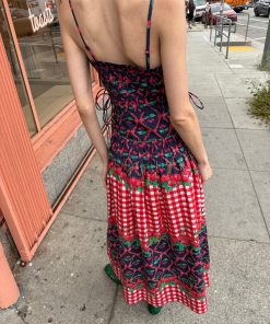 This midi dress is made from lightweight 100% organic cotton with a fun cherry print. It features removable straps, adjustable ties on the bodice, and a side seam zip, making it easy to style for any occasion. Fits true to size—select your regular size.