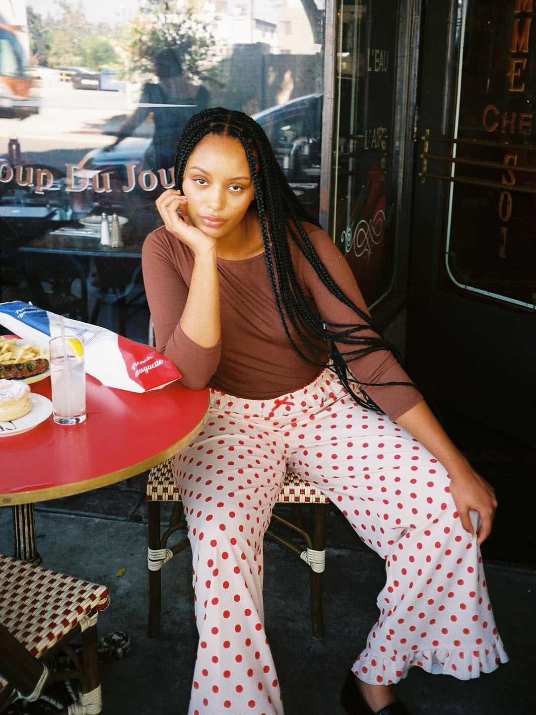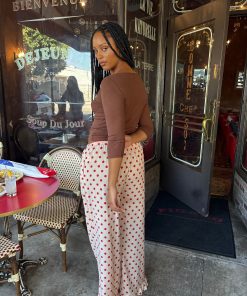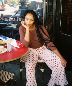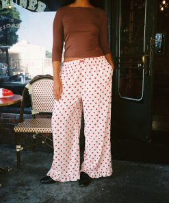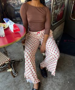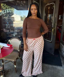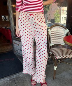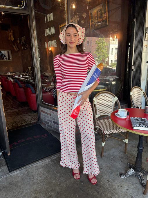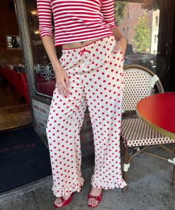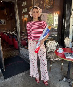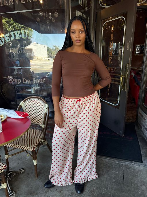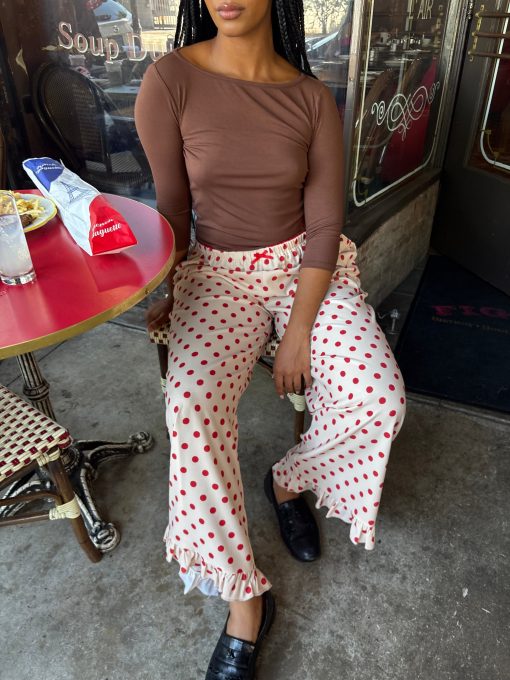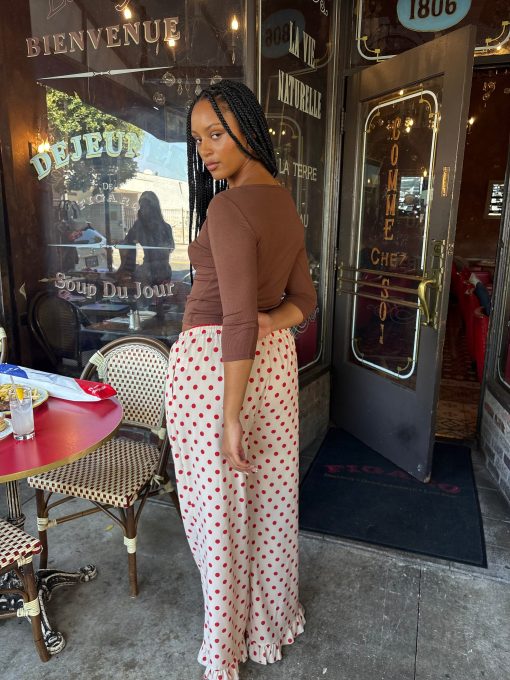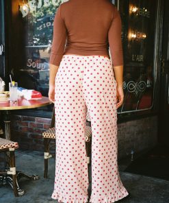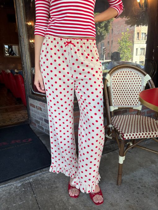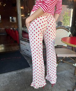 Introducing Le Petit Dot: Dots, stripes, and silhouettes made for the season in-between. The Liora is a cozy polka-dot trouser in a wide leg cut, featuring a ruffle hem and a small bow appliqué.