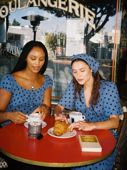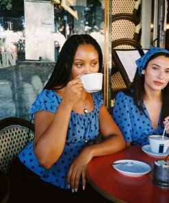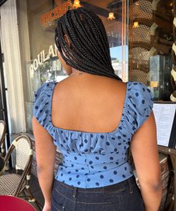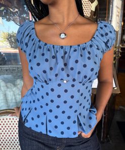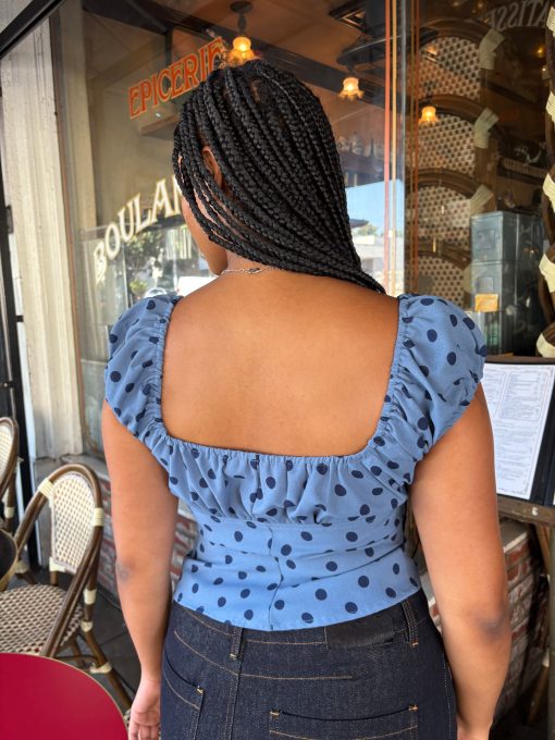 Introducing Le Petit Dot: A collection full of classic stripes and adorable dots! The Pat Top is a corset-style blouse with a sweet elasticized neckline and a ruched short sleeve for a puff-sleeve effect. This blouse has a flattering pleat at the bodice and a hidden zip closure at the side. Featured in our signature Oxford Dot print. This top runs a bit small. We suggest sizing up by 1 size.