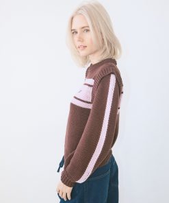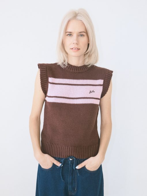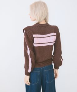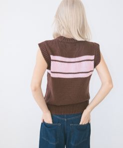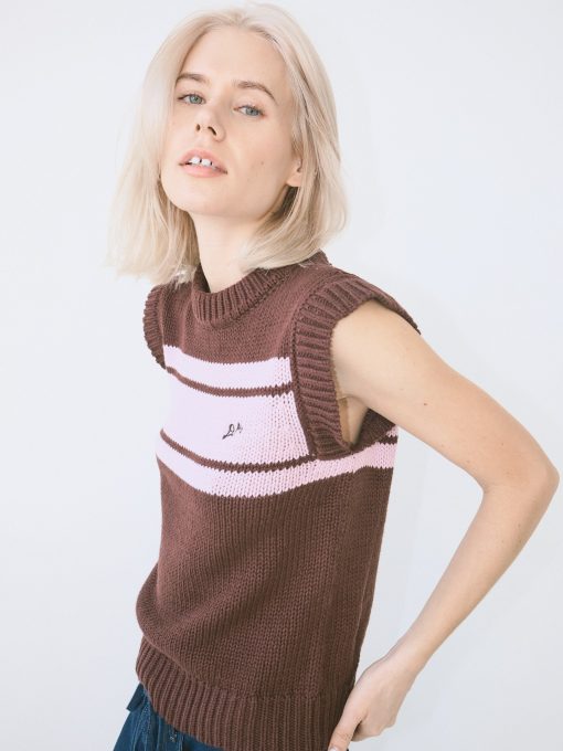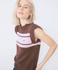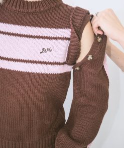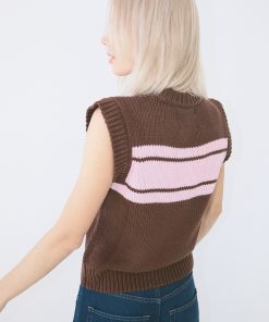 Crewneck sweater featured in a cotton-acrylic knit and an athletic stripe at front and down the sides of the sleeves. Sleeves are removable for a 2-in-1 feature, making this a versatile sweater and sweater vest.