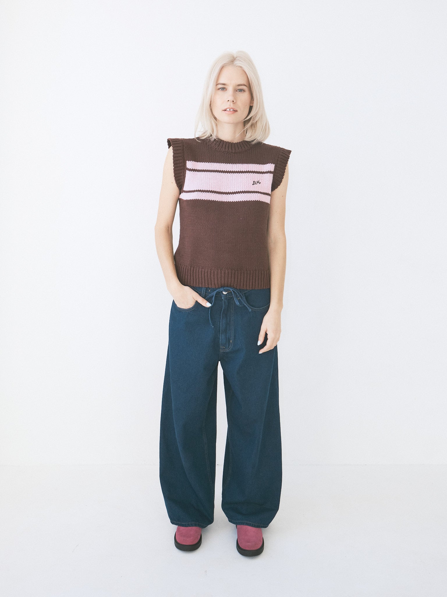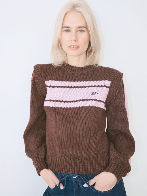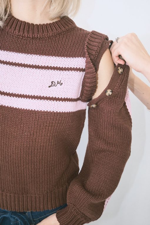 The Poppy crew neck sweater is your year-round essential. With removable, button-fastened sleeves, it adapts to any season. Featuring DM embroidery and a classic crew neck, this knit fits true to size and is made from a soft cotton-acrylic blend.
