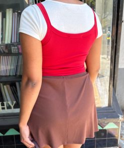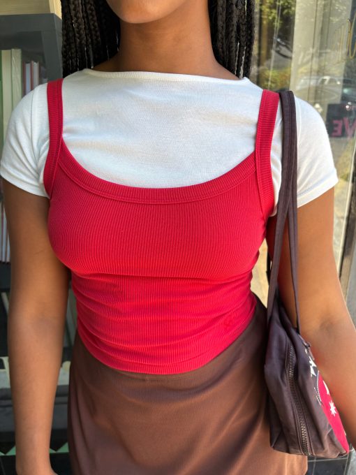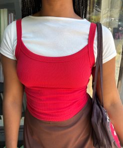 The Harley Tank is a spaghetti strap tank top in soft, cotton t-shirt fabric featured in a bright red. This tank features our custom ‘Gah!’ embroidery at the bottom hem for a fun detail. Runs true to size.